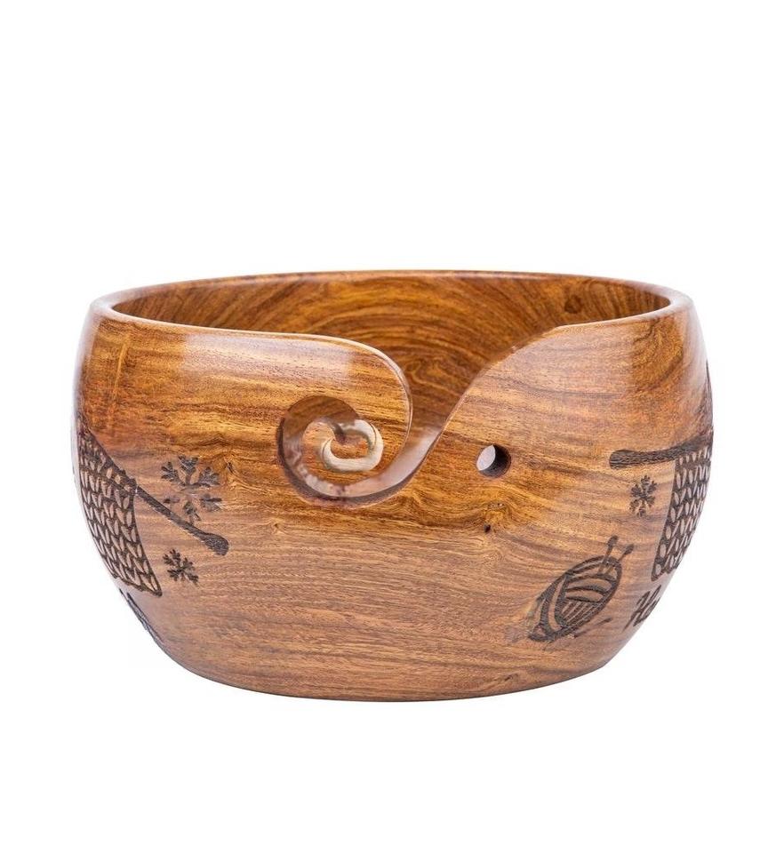 Handmade Yarn Storage Bowl with Carved Window Natural Wood Knitting Crochet 7X 3 Inch Antique and Modern