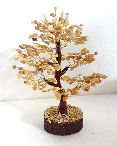 Gemstone Handmade Yellow Aventurine Stone Crystal Beaded Tree Agate Flower Style Thick Wooden Roots Semi-Precious Gemstone