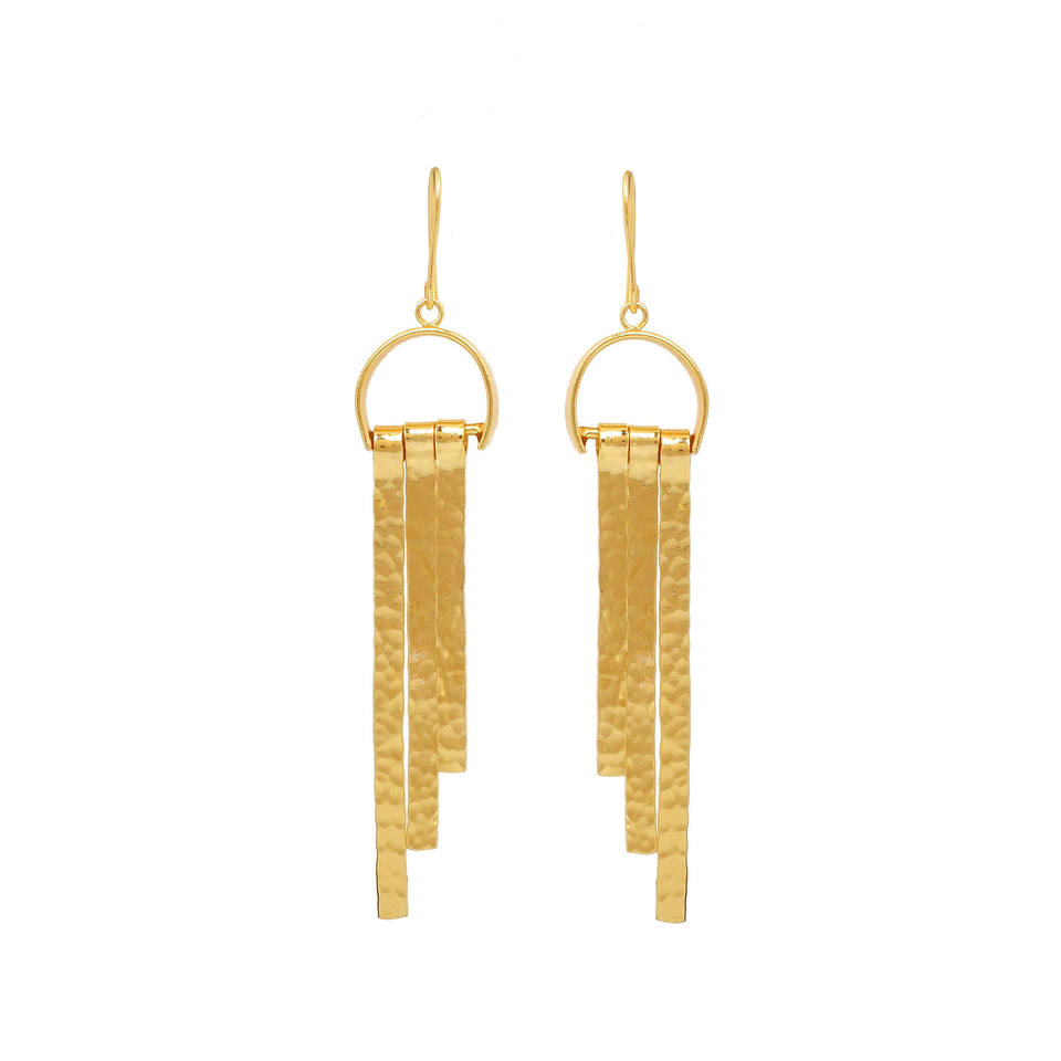 Handmade Yellow Gold Plated Brass Hammered Designer Dangle Boho Earrings Unique Jewelry for Women and Mom for Weddings