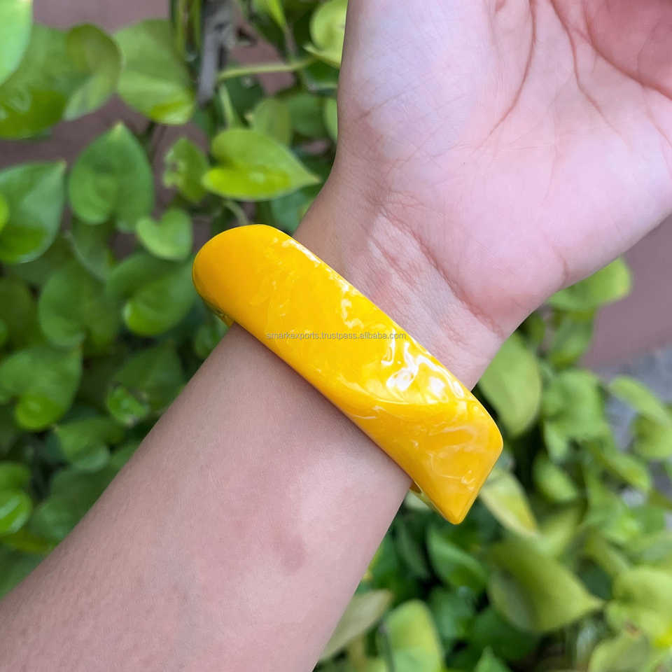 Handmade Yellow Resin Bangle Fashion Bracelet Stylish Wristwear Jewelry for Women Girls Chunky Armlet Statement Resin Accessory