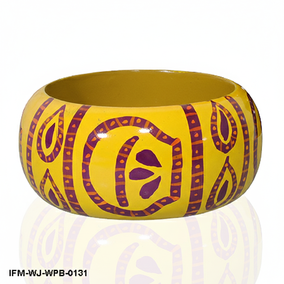Handmade Yellow Wooden Painted Bangle Wide Chunky Wood Cuff Bracelet Hand-Painted Folk Art Jewelry