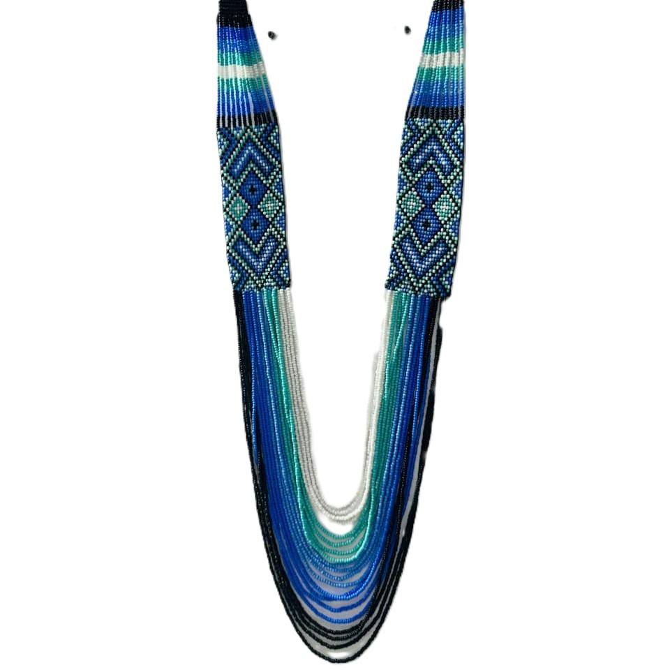 Handmade beaded necklace with geometric diamond pattern and layered strands ethnic tribal jewelry artisan fashion for women gift