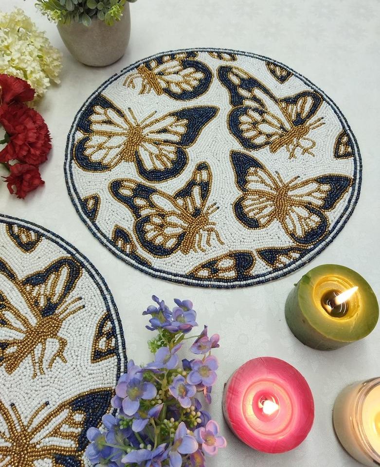 Handmade beaded placemat, floral tablemat red pink yellow inch charger plate