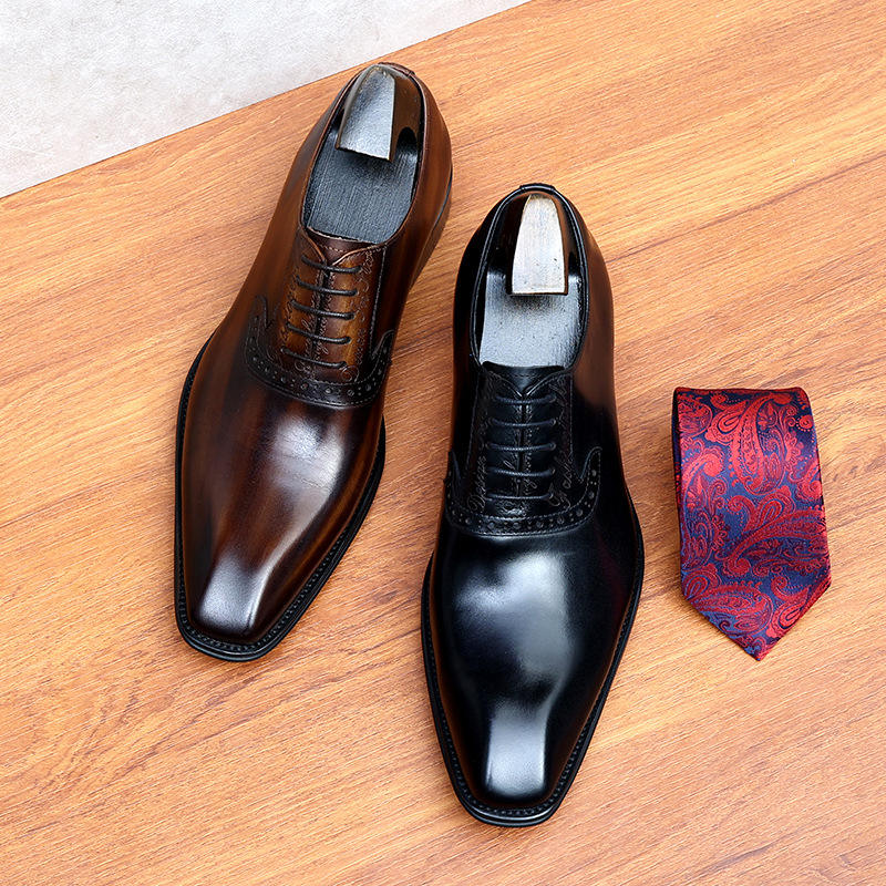 Handmade cowhide business formal men's leather shoes, embossed leather, retro style, fashionable trend, suit shoes