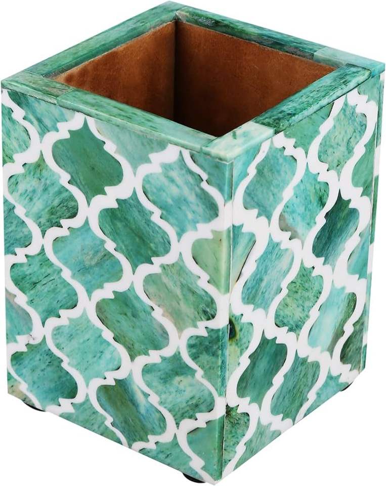 Handmade Luxury Pen Holder Organizer with Bone Inlay Design Customized Wood and Resin Material for Pencil Storage