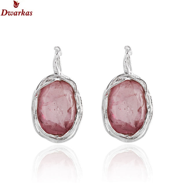 Handmade earrings solid 925 sterling silver tourmaline doublet quartz gemstone texture dangle earrings jewelry women