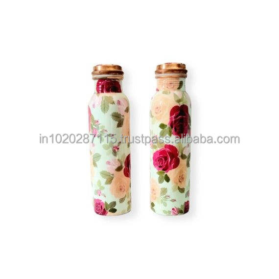 Handmade enamel printed copper water bottle with traditional painting and premium finished perfect for gifting or personal use