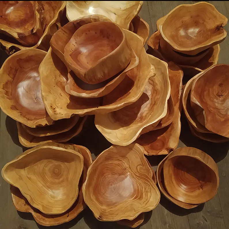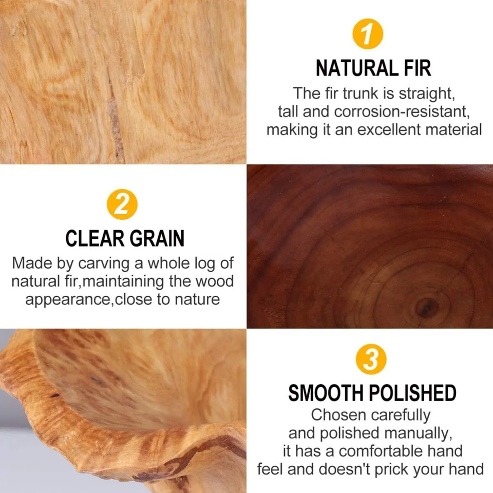 Handmade Wooden Carving Plate for Christmas Home Decor Farmhouse Style Key Nut Dining Bowl Key Nut Fruit Candy Snack Wood Bowl