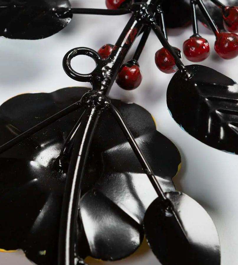 Handmade flowers berries metal wreath wall hanging decor