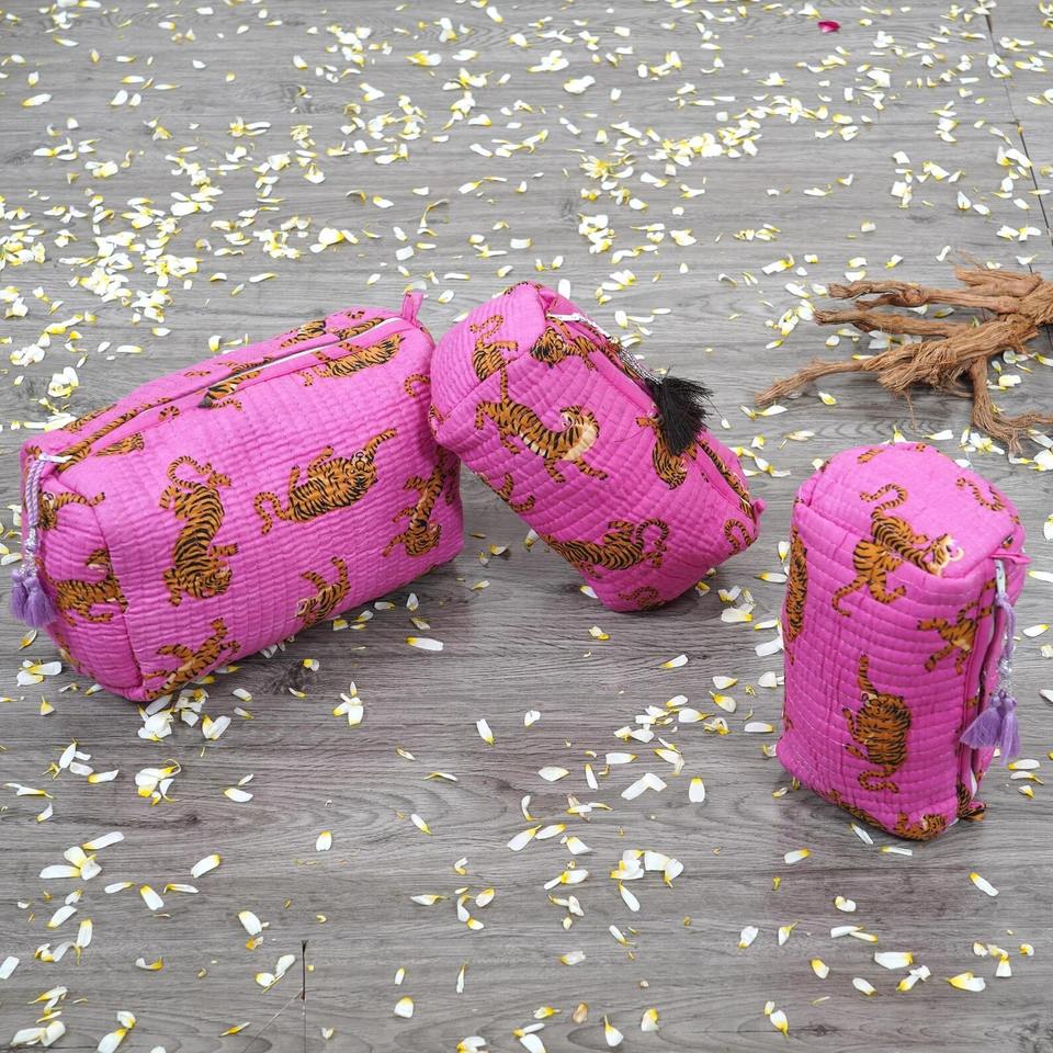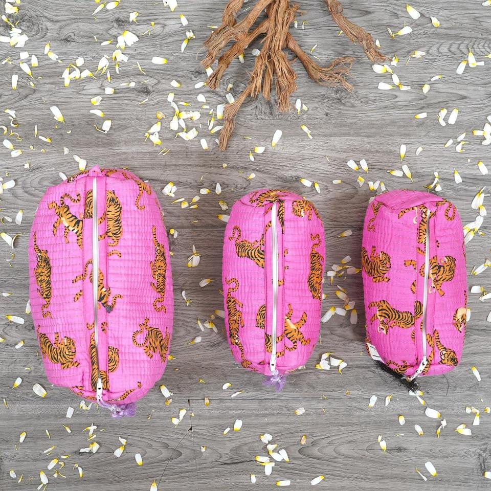 Handmade for Quilted Cotton Eco-Friendly for Case Set 3 Vintage Travel Cosmetic Pouches Water-Resistant Durable Available