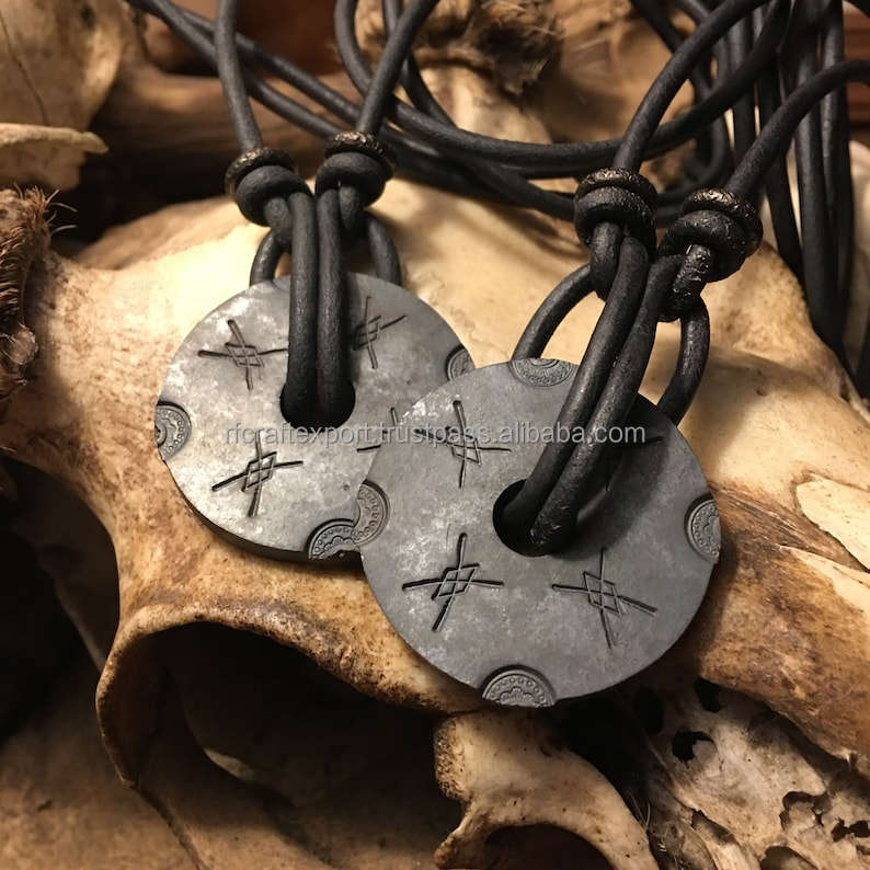 Handmade Forged New Shield Pewter Charm Necklace Pendant Jewelry With Cotton Cord