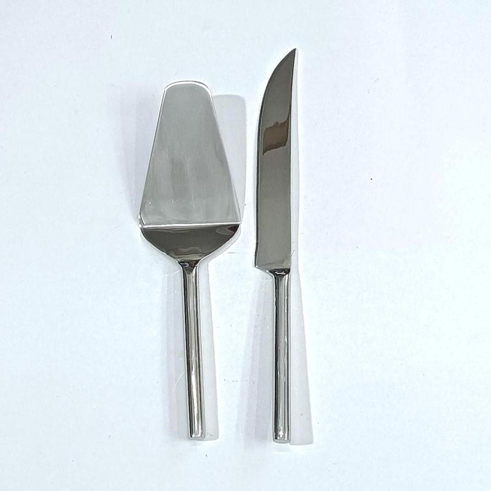 Handmade forged Round handle Stainless Steel hand polished Cake Server and Cutter for Wedding restaurant and hotel