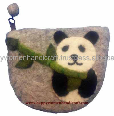 Handmade in Nepal Unisex Long Wallet Unique Panda Shape Stylish Accessory Felt Material