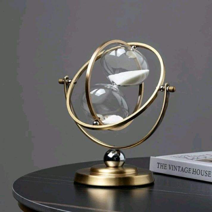 Handmade metal glass sand timer with fine craftsmanship ideal for luxury home or corporate office decoration