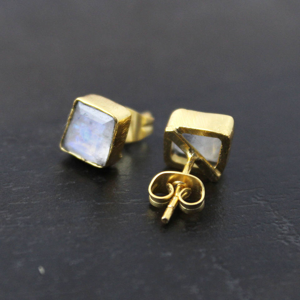 Handmade natural Raw Moonstone Gemstone Gold Plated Stud Earrings Wholesale For India