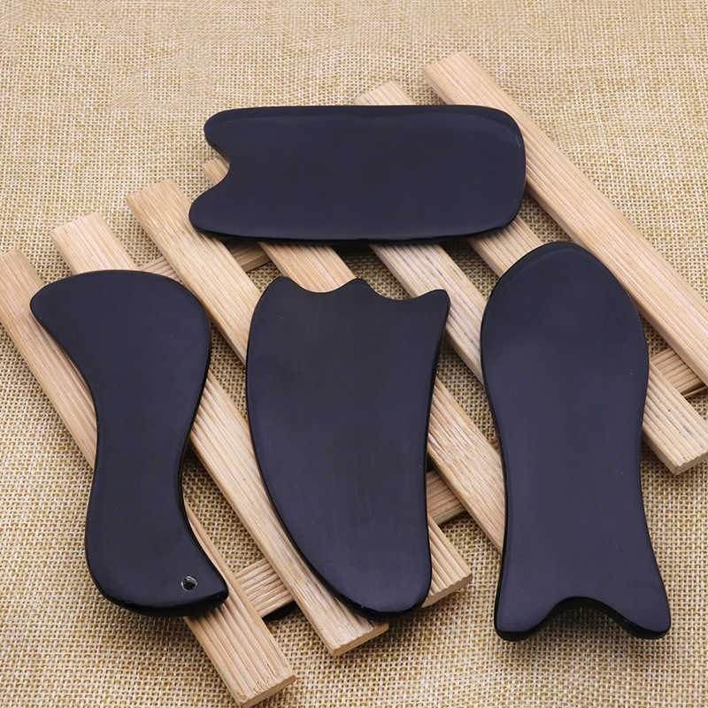 Handmade natural black horn gua sha massage tool scraper for face body acupressure therapy lymphatic drainage skincare