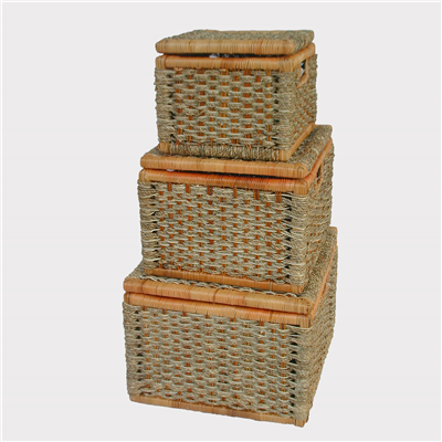 Handmade Natural Wicker Clothes Hamper Basket Multifunctional Storage Hamper Plastic Cotton Fabric Iron Kitchen Use Wholesale