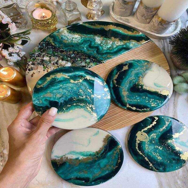 Handmade resin coasters with crystal shine perfect for modern table setup durable epoxy drink mats for living room and dining