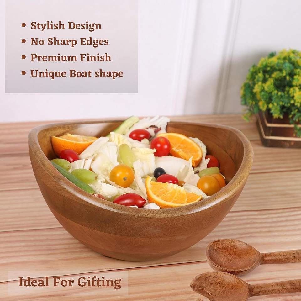Handmade rustic acacia wood fruits bowl wooden salad bowl for snacks cereal mixing decorative kitchenware for home and table