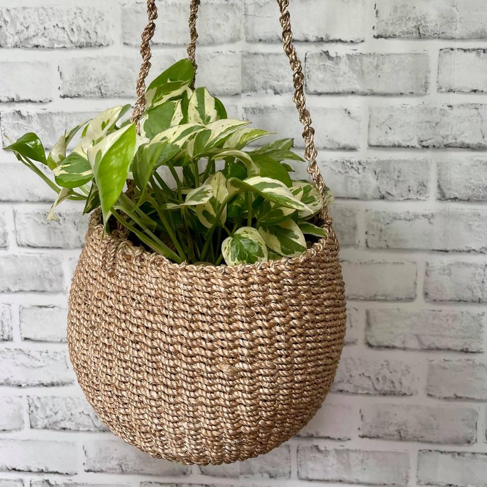 Handmade seagrass hanging planter pots wholesale garden accessory sea grass plant planters