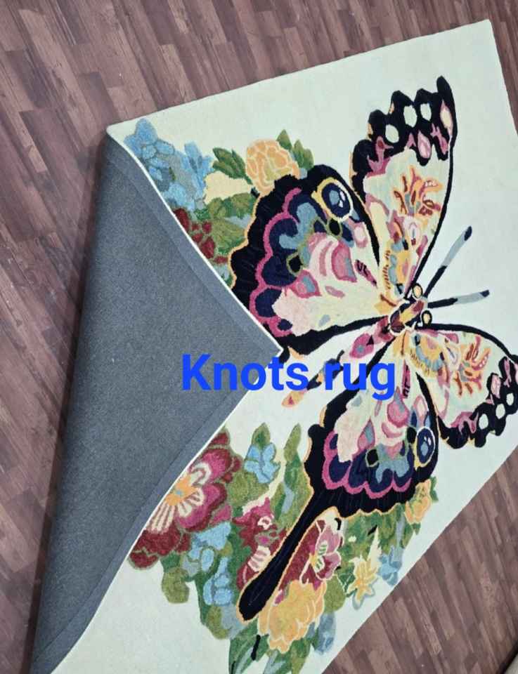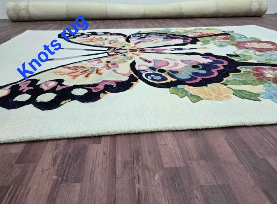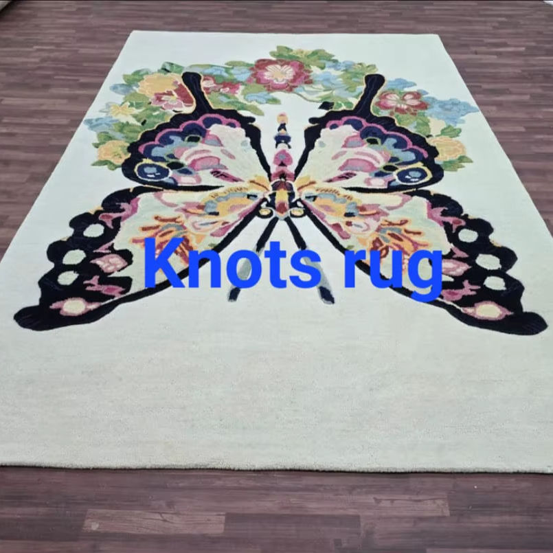 Handmade wool multi color soft hand tufted modern butterfly rug for bed room kids room