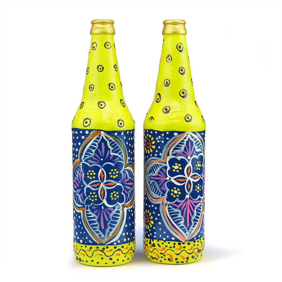 Handpainted Glass Bottle for Home Decor Made in India