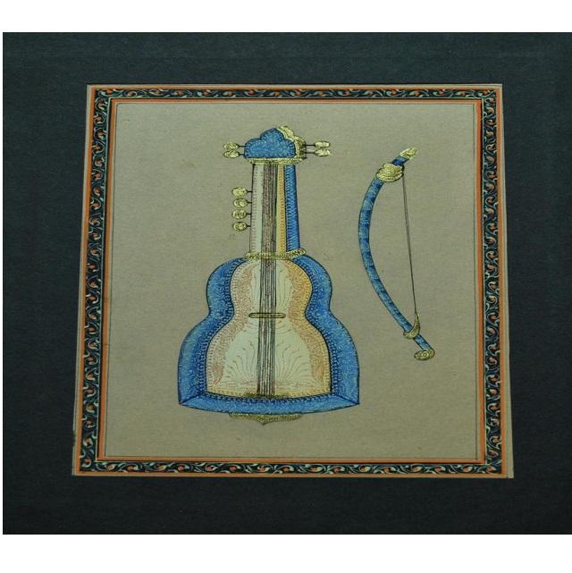 Handpainted Sarod Musical Instrument Painting Indian Classical Music Art Traditional Wall Decor for Home Living Room