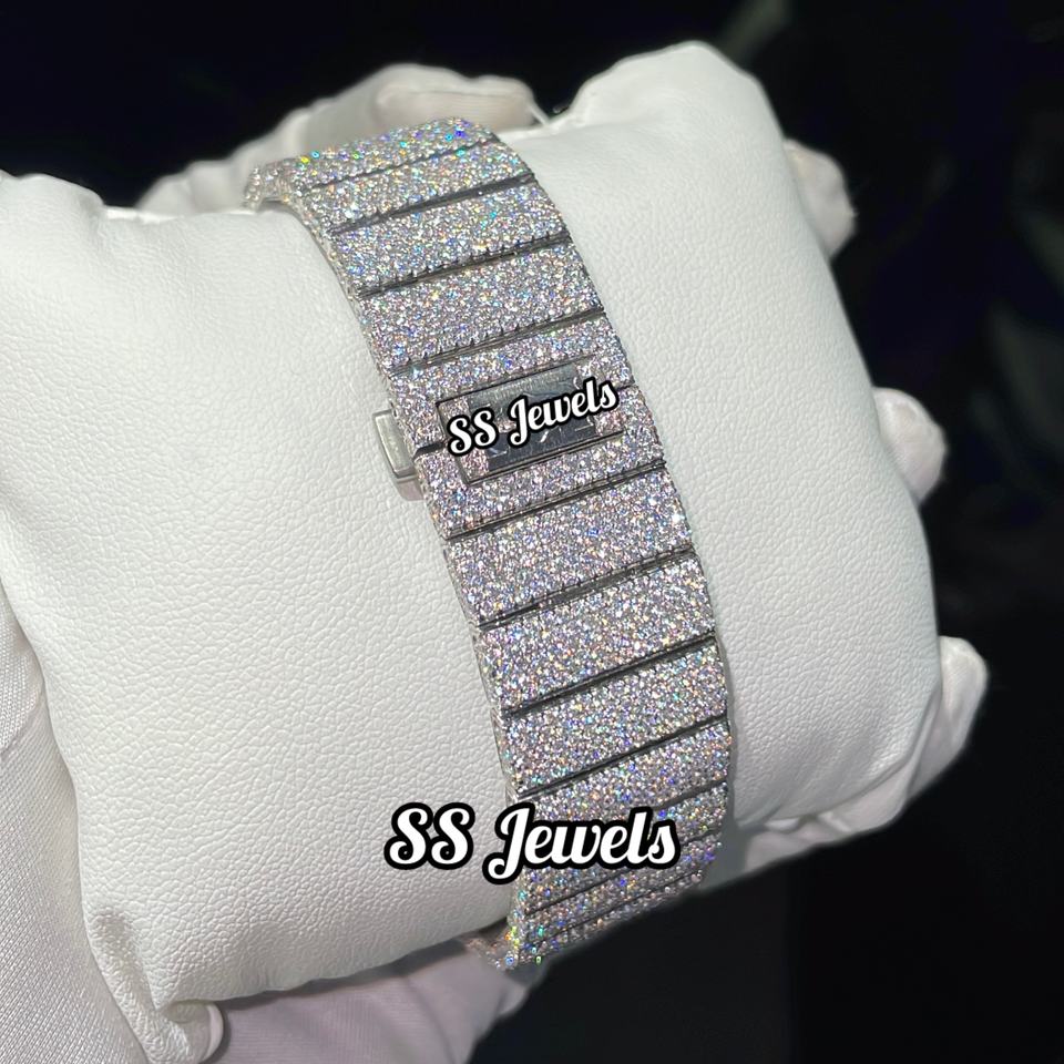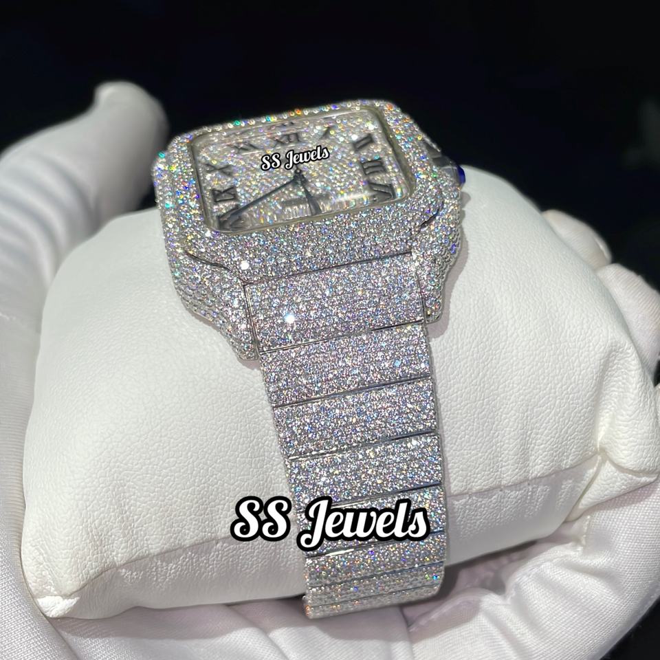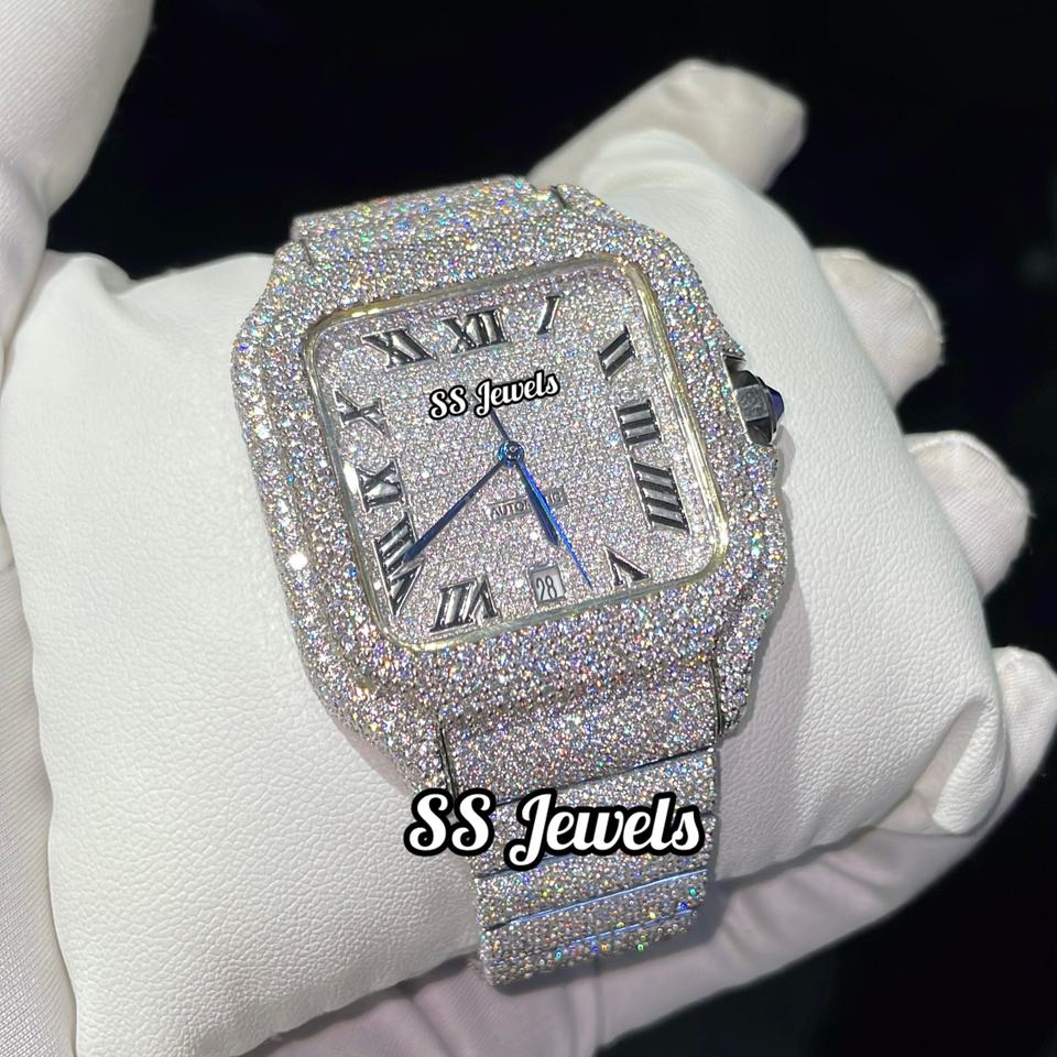 Handset VVS Small Diamond Mens Stainless Steel Wrist Watch Roman Letter Automatic Mechanical Movement Hip Hop Iced Glass
