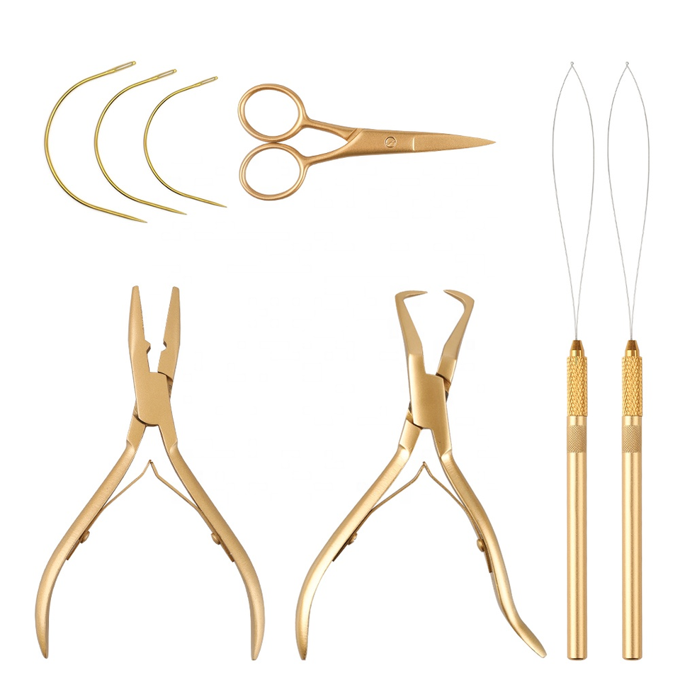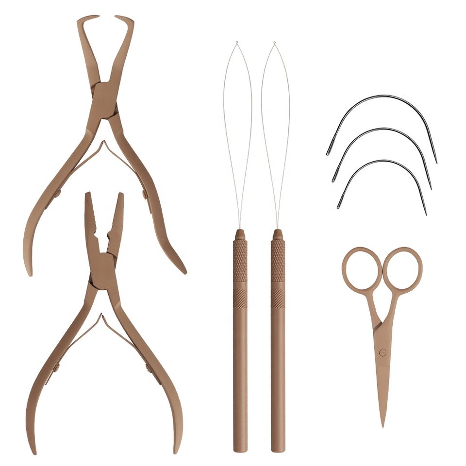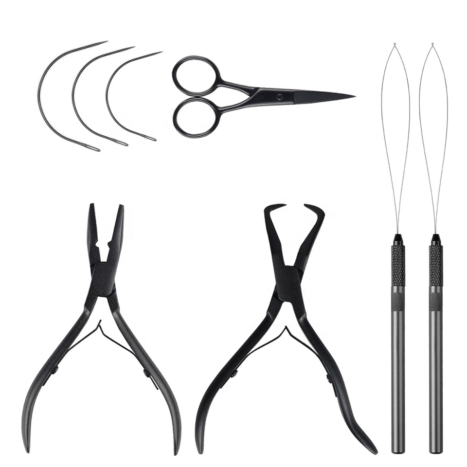 Handtied Hair Extension Tool Kit Skin &White Beads Pulling Loop Hook Tools Weft Extension Pliers Multi-Purpose Hair Care Styling