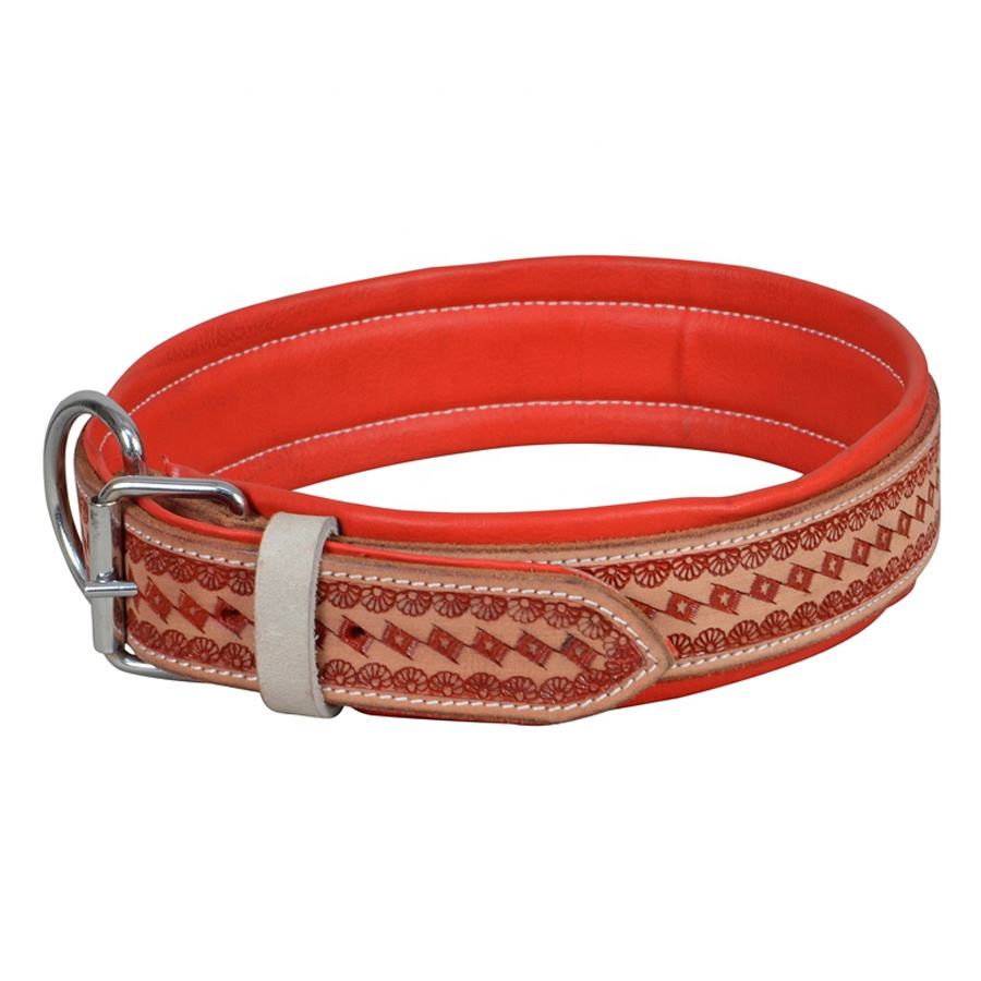 Handtooled Solid Pattern Carved Leather Dog Collar Iron Hardware Customized Personalized Pet Collars Leashes Harnesses Made
