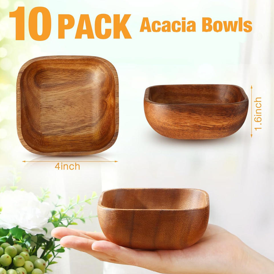 Name:Acacia Wood Serving Bowl ! Set of 10