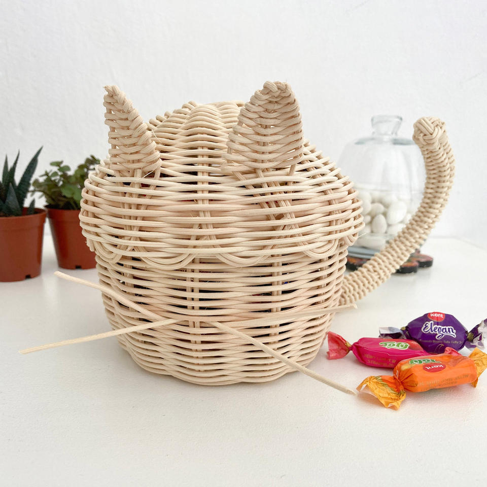 Handweave rattan bin baskets in kitty shape storage basket bins for newborn baby accessories