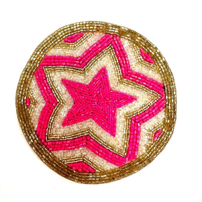 Handwork Beaded Embroidery Large Star Design 4 Set Coaster Fancy Stylish Designer And High Quality Exclusive Tea Table Decor