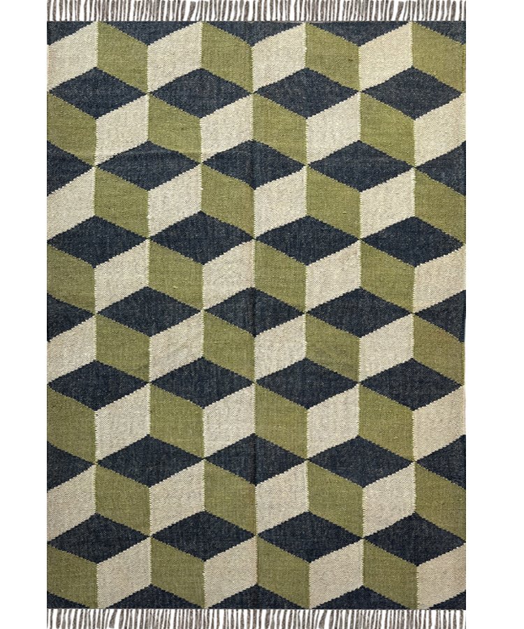 Handwoven 100% Wool Jute Kilim Dhurrie Rug 4x6 Feet Best Quality with Embroidered Geometric Design Indian Style Area Rugs & Sets