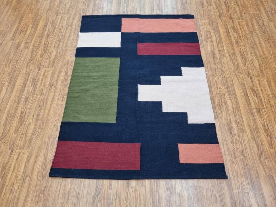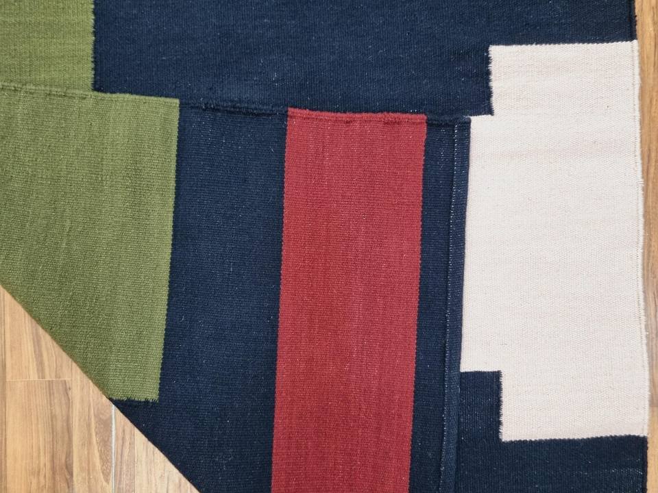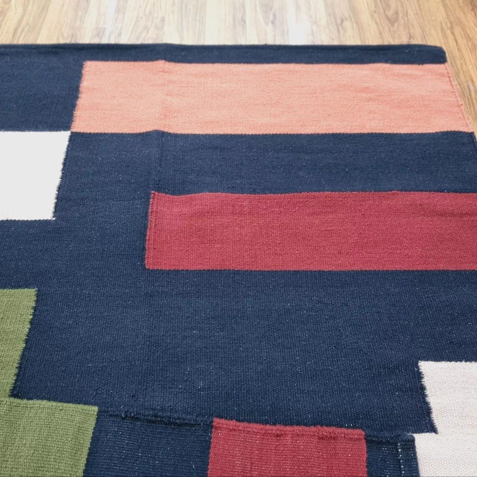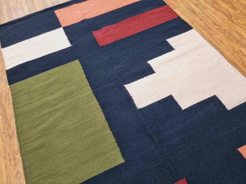 Handwoven Black Cotton Rug Abstract Flat Weave Rug for Living Room Bedroom Dining Room