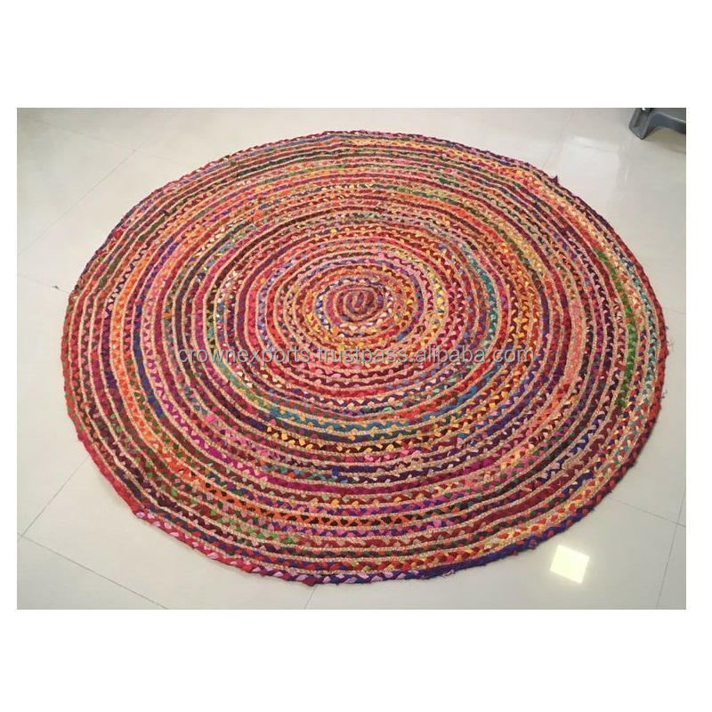 Handwoven Braided Round Chindi Sisal Jute and Cotton Rugs and Carpet Beautiful Indian Natural Pattern for Your Home Carpet