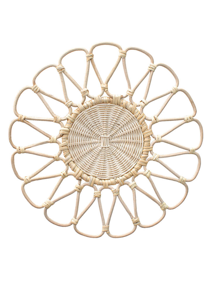 Handwoven Colorful Rattan Flower Placemat, Decorative Table, Decoration Small Floral Wicker Mat, Eco Friendly, Home Accent