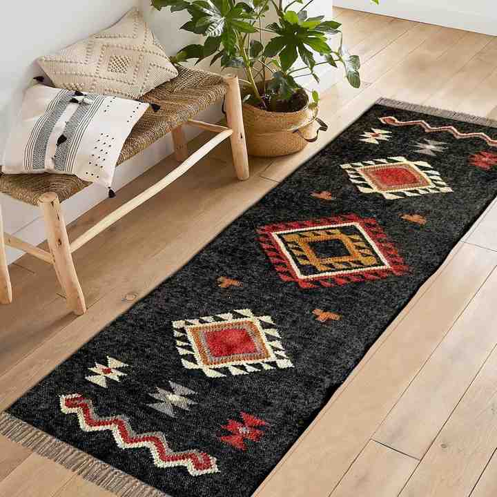 Handwoven Cool Toned Jute-Woolen Kilim Rugs for Living Room Bedroom & Study