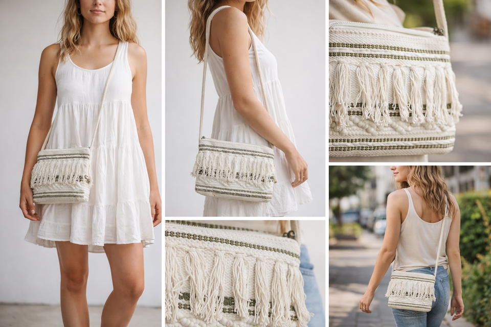 Handwoven Cotton Rugs Fringe Crossbody Shoulder Sling Bag Boho Ethnic for Women Soft Lightweight Durable Ready to Ship
