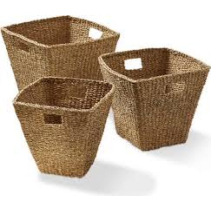 Handwoven Eco-friendly Sustainable Decorative Seagrass Jute Foldable Storage Baskets Handles Set 3 for Home Decor