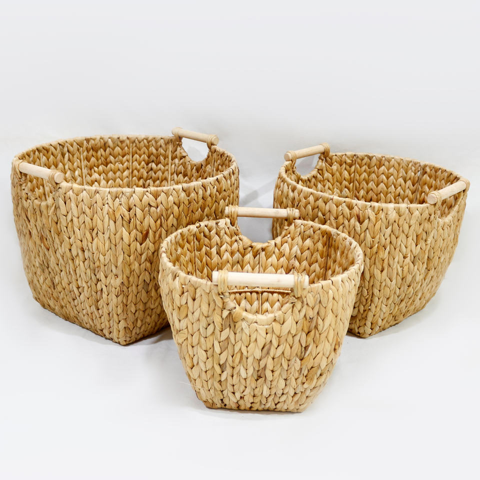 Product name:Set of 3 round top and square bottom water hyacinth baskets