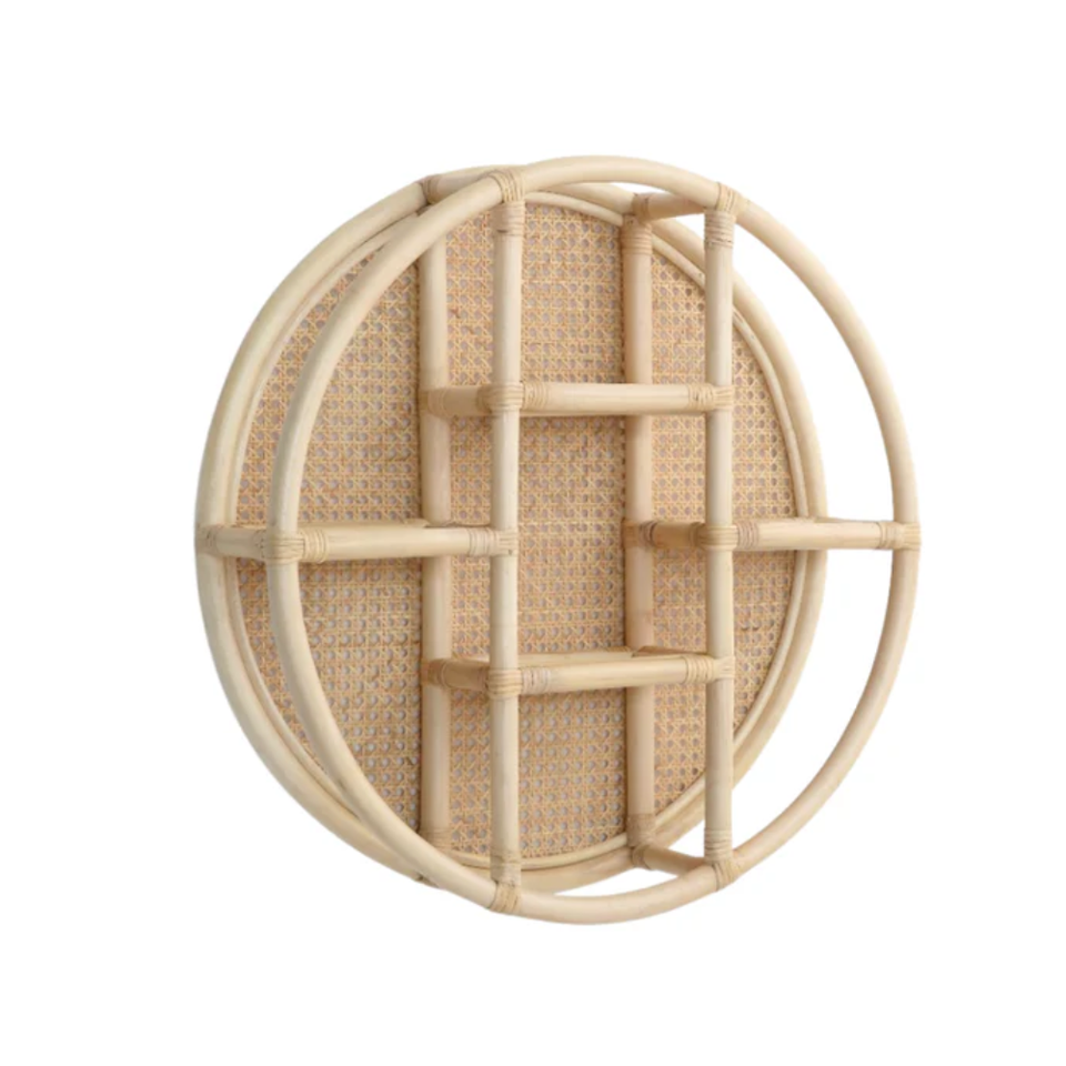 Handwoven Farmhouse natural rattan round hanging wall shelves wholesale shelves for living room kitchen bathroom from Vietnam