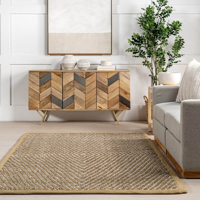 Handwoven Geometric Striped Seagrass Area Rug Coastal Decor Set