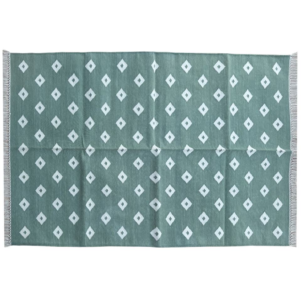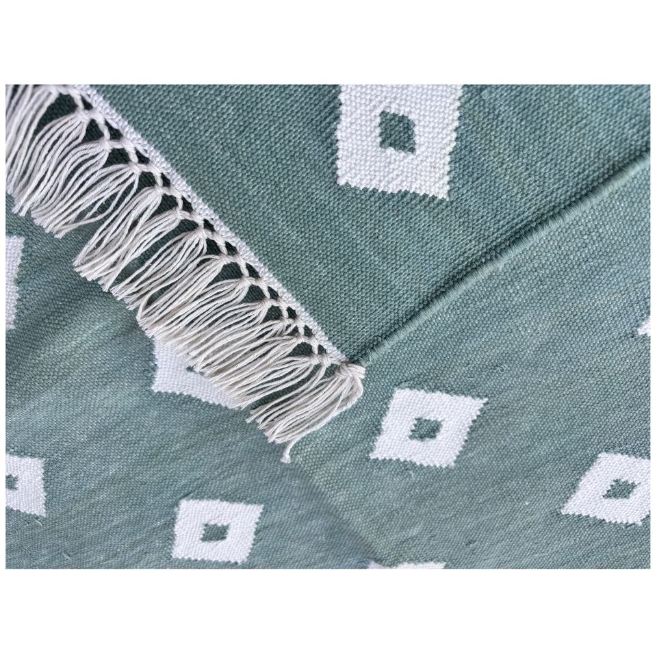 Handwoven Modern Geometric Design Flat Weave Eco-Friendly Indian Area Rugs & Sets Green Cotton Customizable