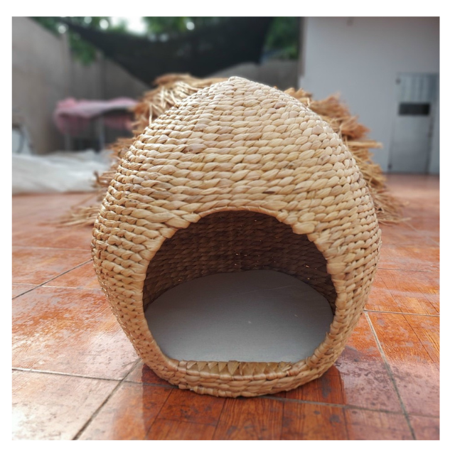Handwoven Hyacinth Pet Bed for Cats Dogs Natural Wicker Nest Basket with Soft Cushion Sleeping House for Small Pets