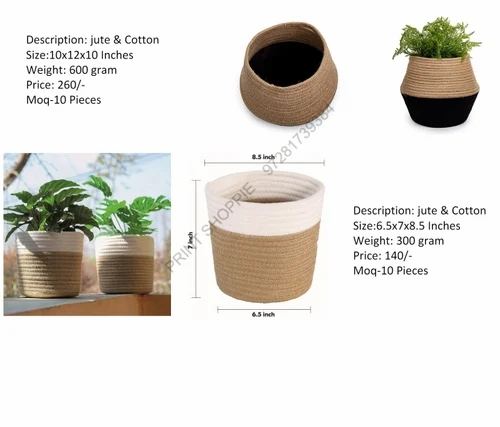 Handwoven Jute & Cotton Rope Plant Basket Woven Storage Basket for Indoor Flower Pots Decorative Home Decor with Handles