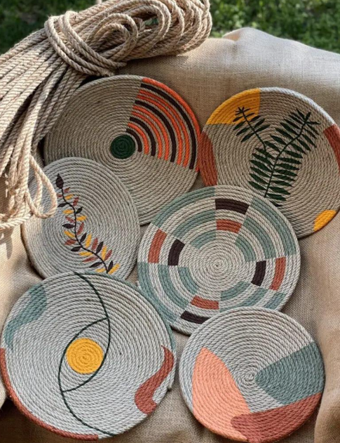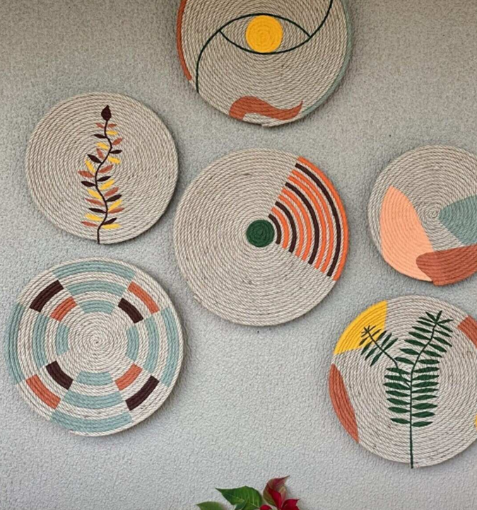 Handwoven Jute Wall Baskets Hanging Decorative Tray Home Pendant Decor Basket Placemat Colorful Wall Art