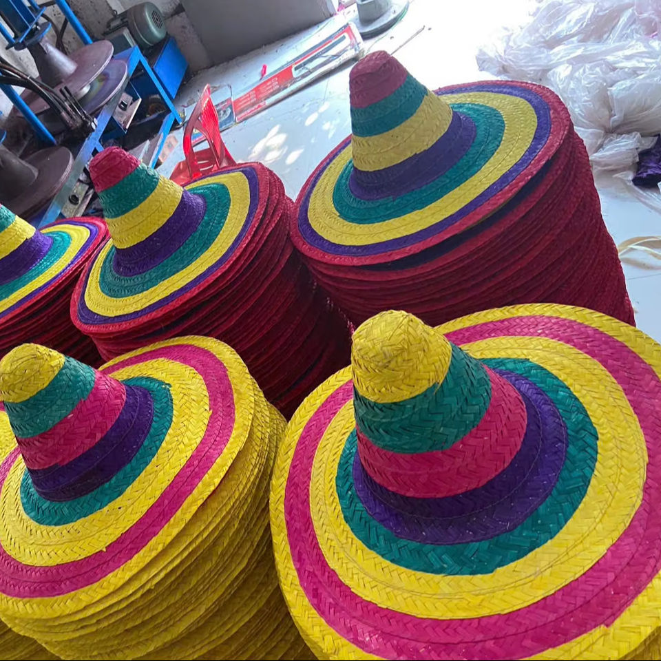 Handwoven Mexican Sombrero Straw Hat Logo Embroidery Striped Style for Sports Fishing Events for Hotel Party Corporate Gifting
