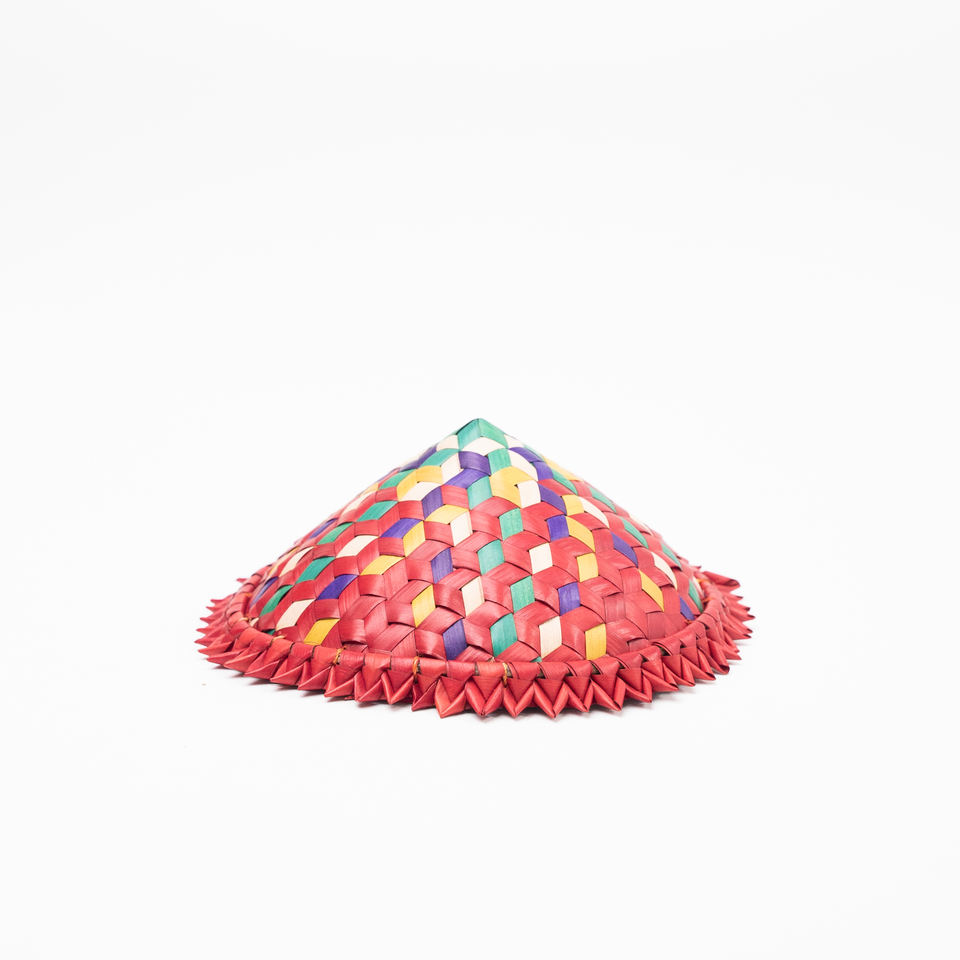 Handwoven Multicolor Conical Hat / Straw Cone Hat - Decorative Geometric Woven Accessory & Wall Decor