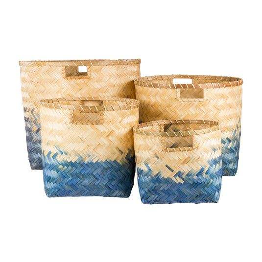 Handwoven Natural Bamboo Storage Basket with Blue Color Decorative Colorful Woven Organizer for Home and Gift Packaging